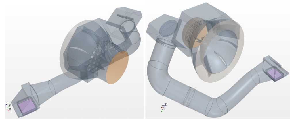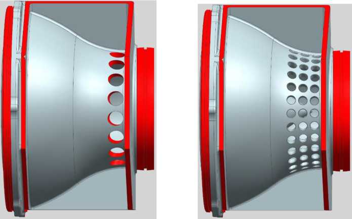 На рис. 8, слева и справа соответственно, представлены исходная и доработанная конструкции напорного патрубка водометного движителя.