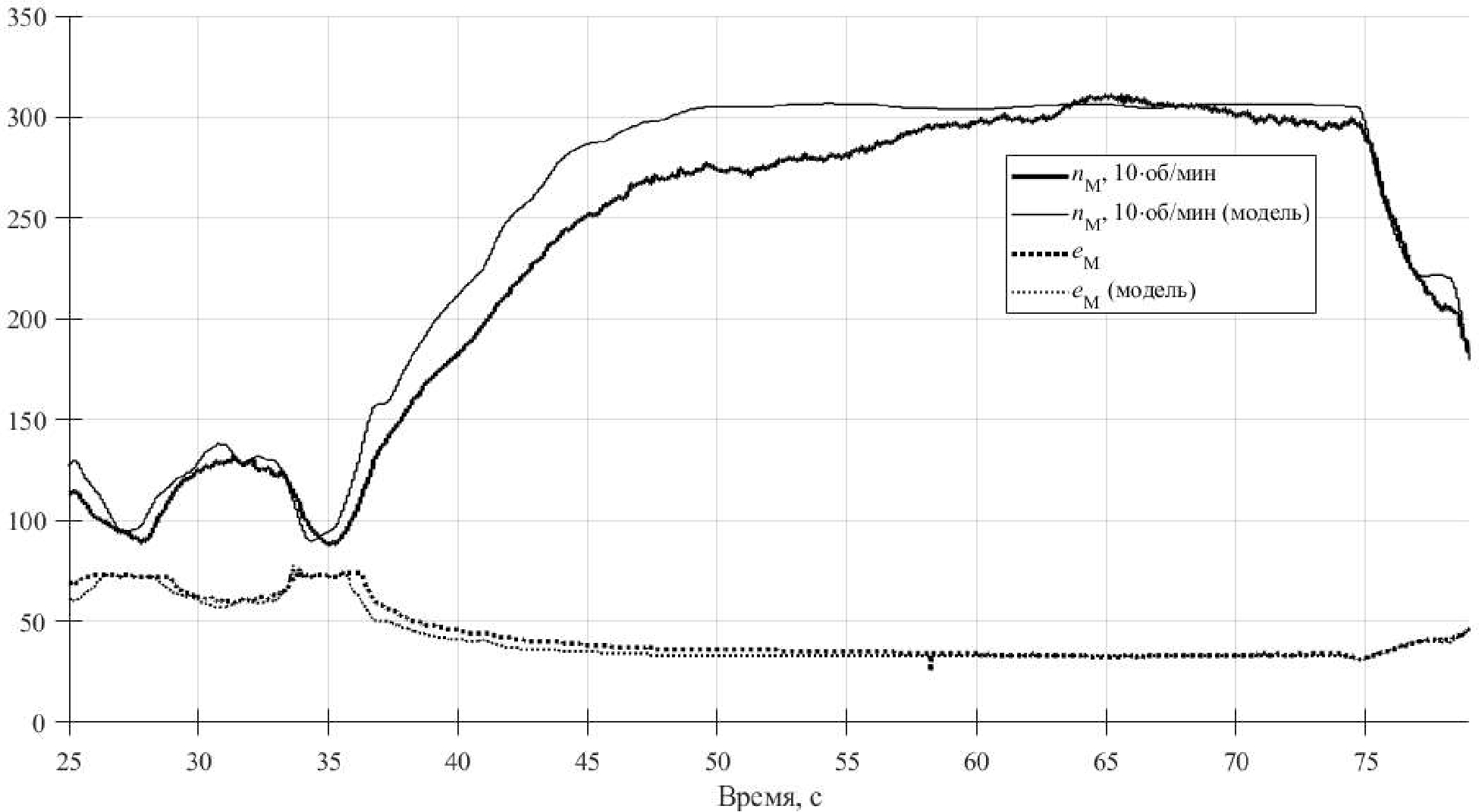 Сравнивая результаты эксперимента с результатами имитационного моделирования можно отметить, в первую очередь их качественное совпадение. Максимальное расхождение результатов наблюдается в значениях давления и составляет порядка 18%, при этом после первой итерации отладки алгоритмов на машине не составит труда учесть это отклонение.