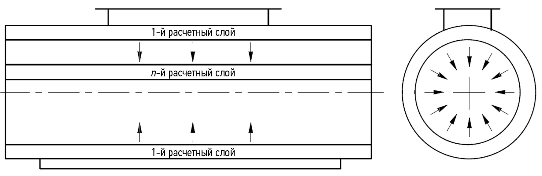 - трубный пучок конденсатора в поперечном сечении разбивается на слои, каждый из которых является рядом охлаждающих трубок на одном расчетном радиусе по направлению движения пара от периферии к центру трубного пучка;