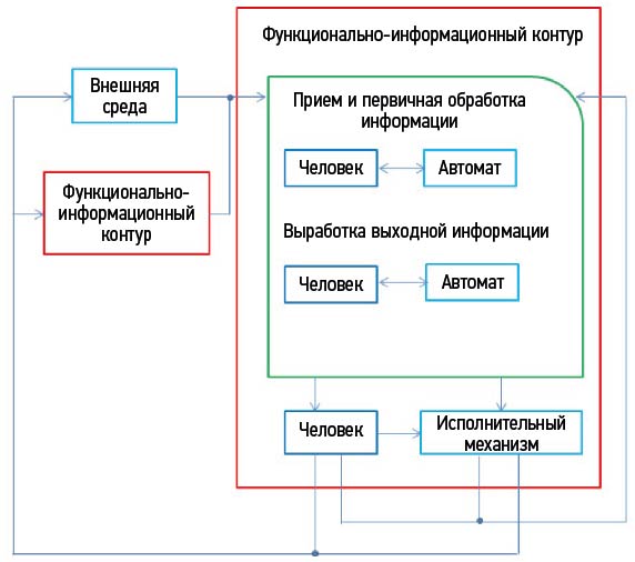 Информационное взаимодействие формализуется через функционально-информационный контур, уровень автоматизации корабля влияет на функции экипажа. В современных условиях управление находится на частичном уровне автоматизации, с диагностическими системами для обслуживания, а автоматизация ремонта только начинает развиваться.
