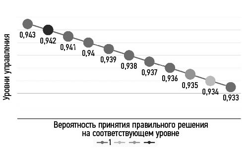 Рис. 7. Вероятность принятия правильных управленческих решений командиром БЧ.