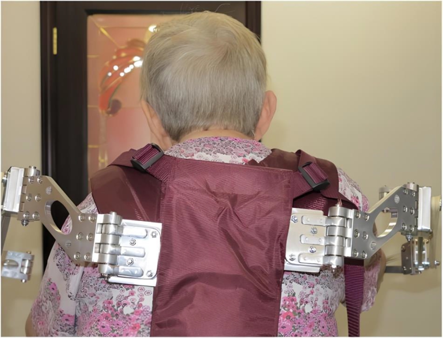 В федеральном центре поддержки, разработки и производства экзопротезов ФГБОУ ВО ВолгГМУ Минздрава России с учетом и устранением недостатков, которые не позволяли предшественникам достаточно широко внедрить подобные конструкции в клиническую практику, был разработан и запатентован пассивный экзоскелет верхних конечностей «ЭКЗАР-34» [9]. Последний нашел успешное применение и на разных этапах абилитации и реабилитации у пациентов, страдающих верхним вялым пара- и монопарезом, включая детей с врожденными и приобретенными заболеваниями (артрогриппозом, различными видами миопатий и др.), взрослых с посттравматическими моно- и полинейропатиями, плексопатиями после огнестрельных, минно-взрывных травм, колото-резаных ранений [4, 10]. Вместе с тем в доступной нам литературе нет указаний на использование пассивных эзоскелетов верхних конечностей у пациентов старшей возрастной группы [1].