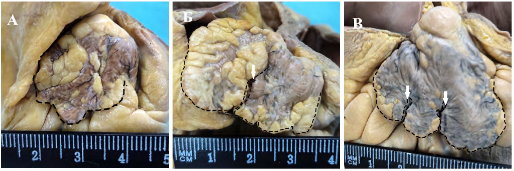 Благодарность. Мы выражаем искреннюю признательность нашим коллегам-патологам за помощь при отборе материала для исследования. Авторы выражают признательность лаборанту Анастасии Игоревне Пасхиной за помощь при работе с анатомическими препаратами сердца, а также Марии Евгеньевне Носковой за внимательное прочтение текста статьи и конструктивные замечания.