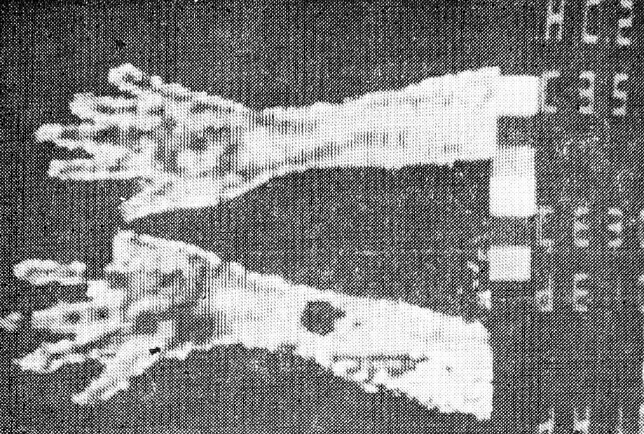 Тепловизионная диагностика (ТД) соответствовала данным ЭТ. На рис. 10 до лечения виден симптом «ампутации» фаланг пальцев руки, то есть вследствие выраженной гипотермии изображения получить не удалось. После лечения (рис. 11) термографическое изображение пальцев руки стало возможным в результате повышения температуры в данной области выше 30°С. После лечения состояние больной улучшилось, она выписана домой.