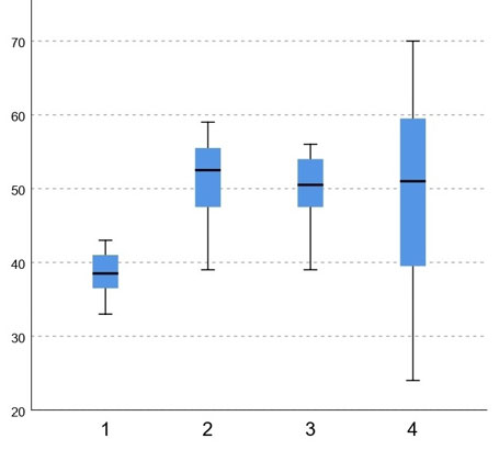 Статистическая обработка полученных лабораторных данных проведена с применением пакетов статистического анализа прикладных программ Microsoft Excel, IBM SPSS Statistics version 25.0. Для проверки на нормальность распределения количественных показателей использовали критерий Шапиро–Уилка. Для статистической обработки данных, не подчиняющихся закону нормального распределения, применяли непараметрические методы. Для сравнения выборок использовали U-критерий Манна–Уитни и Уилкоксона. Для проверки статистических гипотез при сравнении нескольких независимых выборок применяли непараметрический дисперсионный анализ Краскела–Уоллиса. Критический показатель уровня значимости и достоверности различий был р <0,05. Описательная статистика исследуемых показателей представлена медианой и межквартильными интервалами — Ме (25%; 75%).