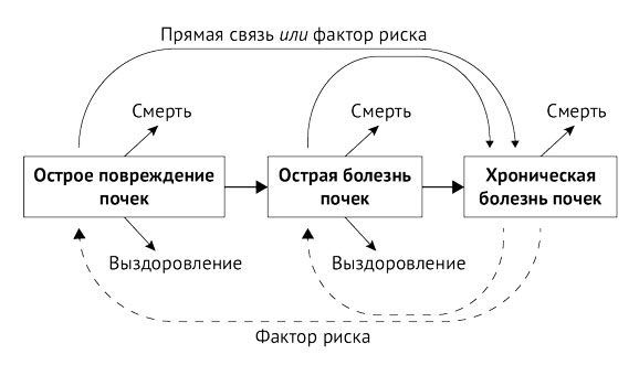 Согласно современным представлениям, ОПП, острая болезнь почек, ХБП взаимно связаны между собой и являются частями «почечного континуума» (рис. 1).