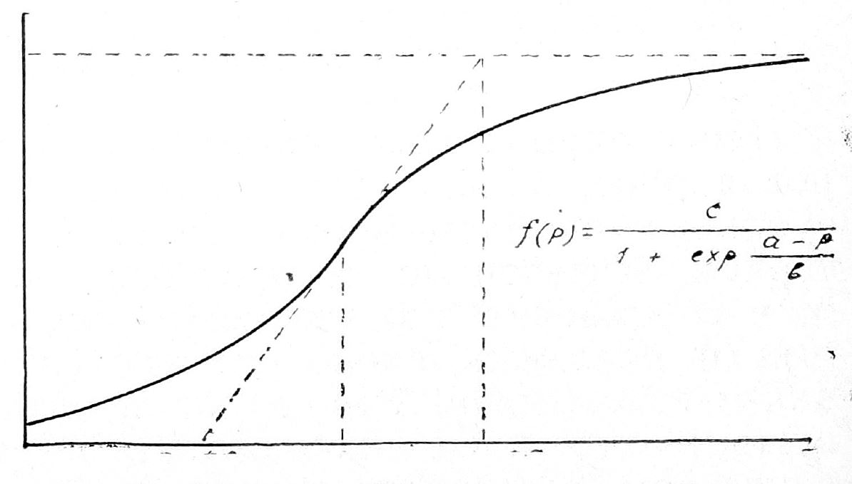 Качество прогноза в значительной степени зависит от выбора регрессионных функций. Так, зависимость частоты аллергозов от степени загрязнения Р имеет явно нелинейный характер, включая область медленного роста, быстрого роста и для некоторых форм область стабилизации. Поэтому в качестве регрессионной функции, описывающей эту зависимость, была выбрана логистическая функция, применяемая для прогнозирования процессов с насыщением. Особенностью таких процессов является то, что сначала развитие происходит медленно, затем темп стремительно возрастает и, наконец, происходит насыщение, стабилизация на определенном уровне.