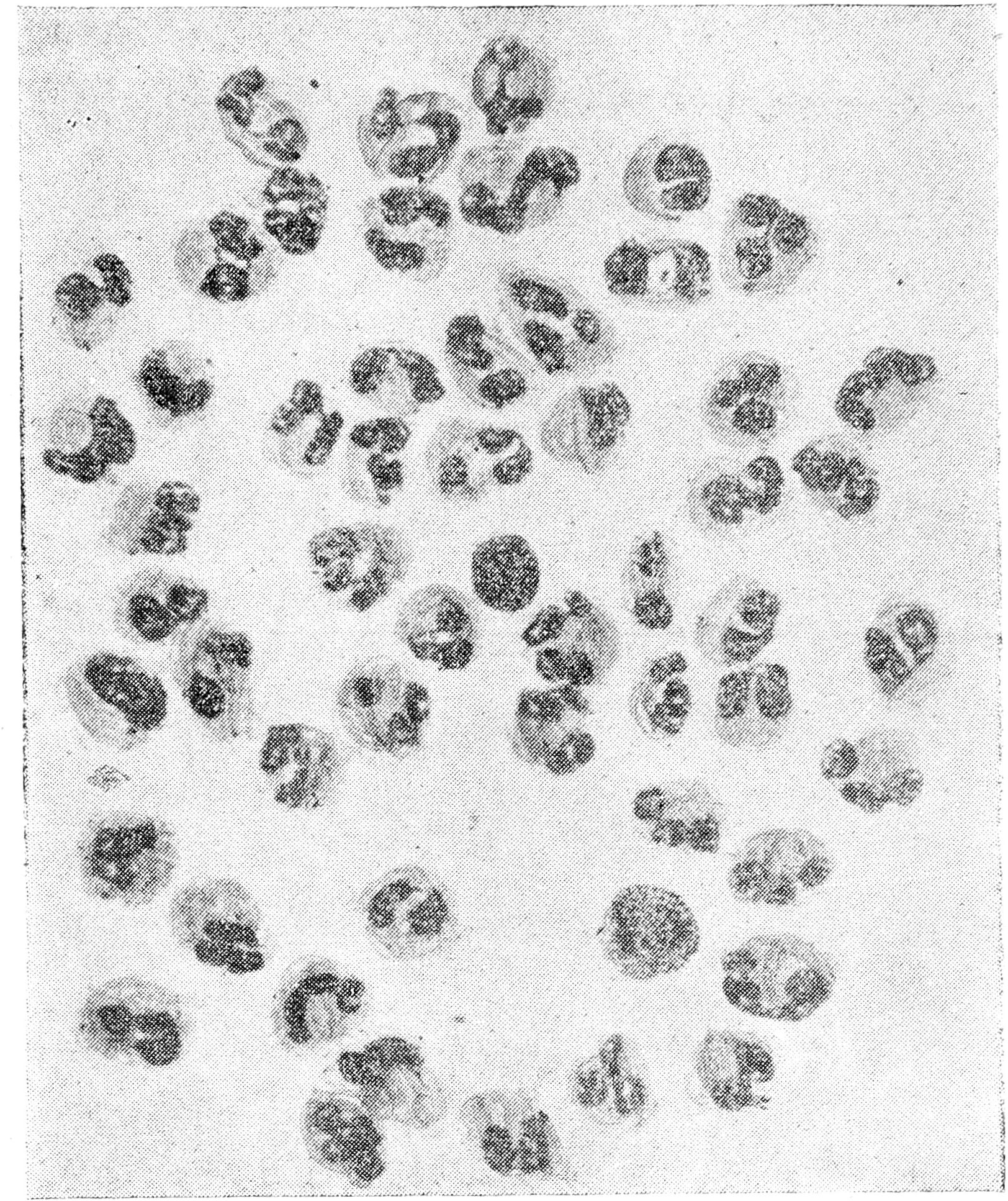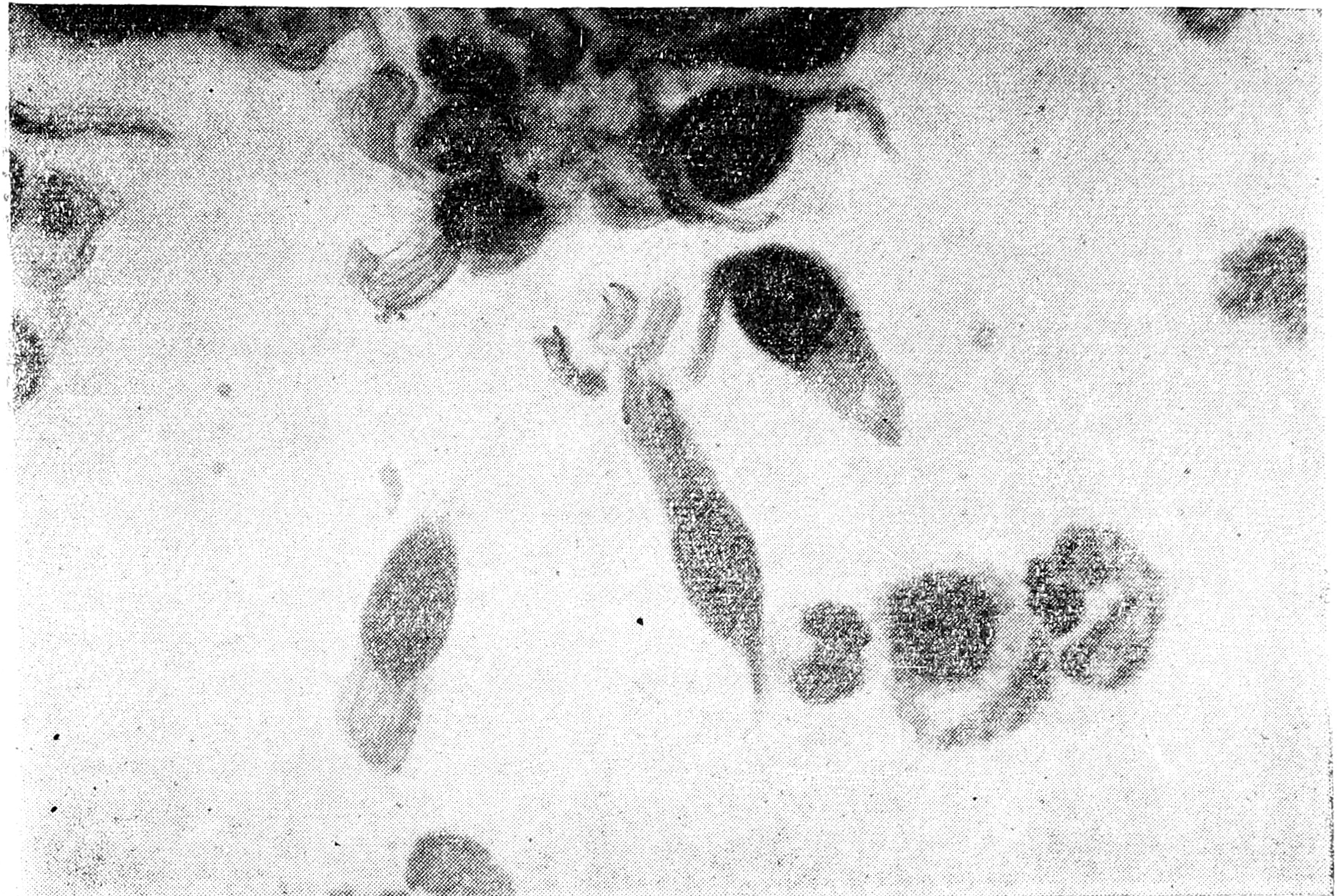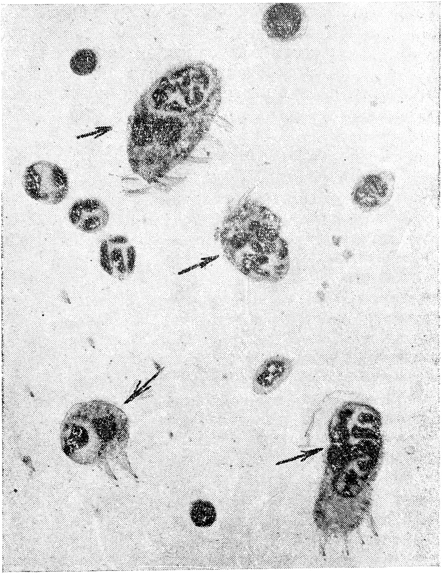 Рис. 4. Отпечаток слизистой носа при остром катаре. Лейкоциты. Клеток цилиндрического эпителия нет (по Ф. Т. Эпштейн).