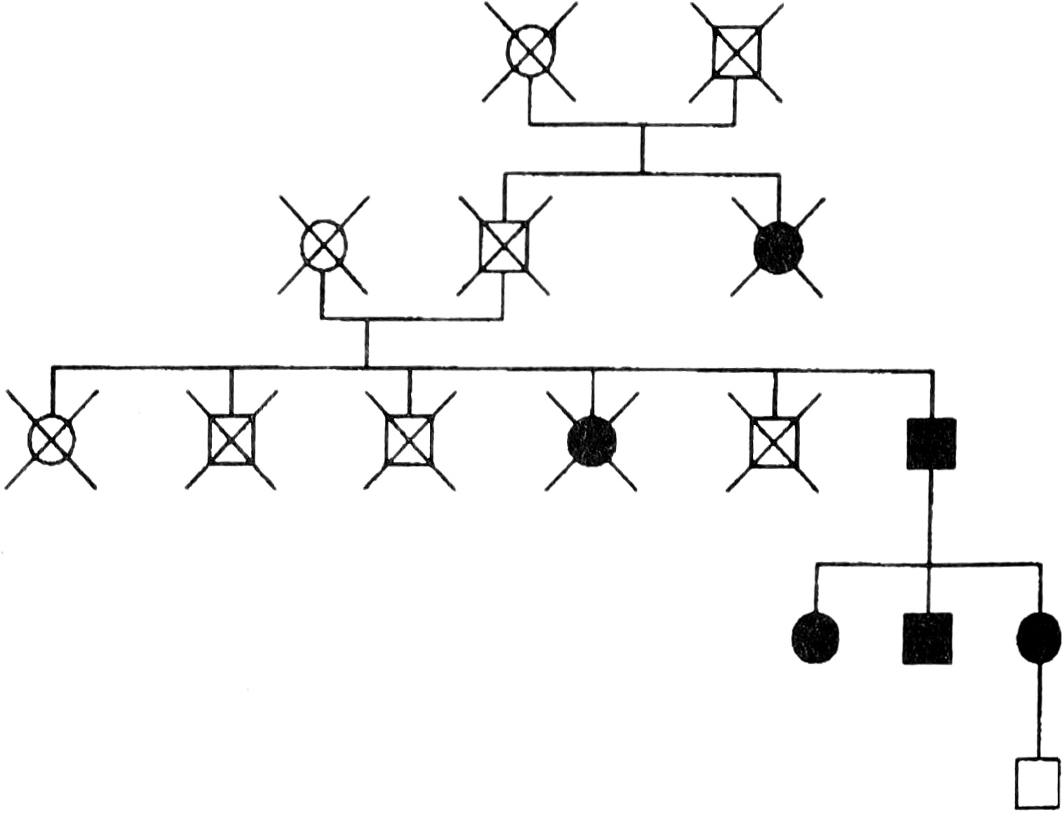 Рис. 1А. Родословная семьи Т. Прогрессирующая мышечная дистрофия Дюшенна.