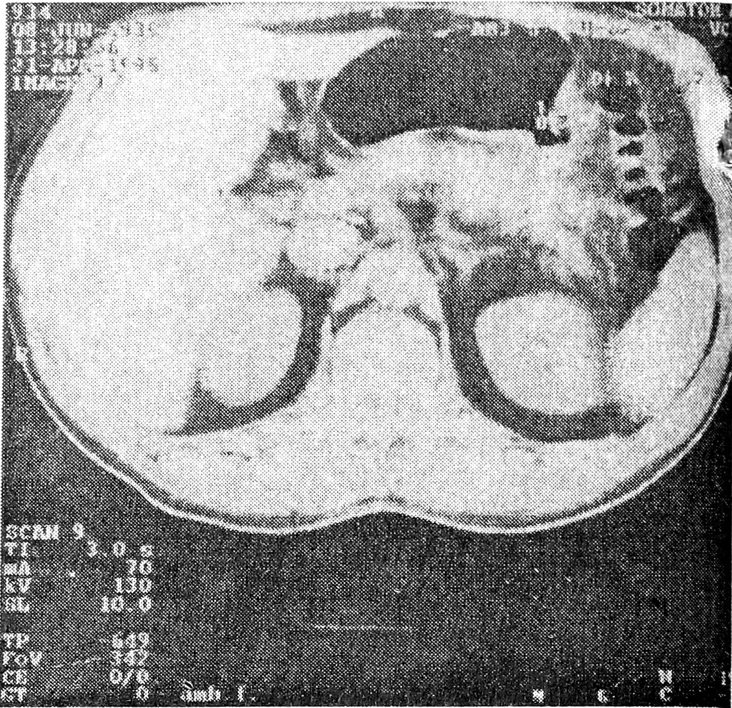 Исследование желудка выполняли натощак, после раздувания его воздухом (или после приема газообразующей смеси — таблетированных препаратов с выделением 300 см3 воздуха) и предварительно проведенных рентгено-эндоскопических исследований с биопсией. Толщина среза во время сканирования не превышала, как правило, 5 мм. Результаты исследований были верифицированы в ходе морфологического изучения гастробиоптатов и оперативных вмешательств. За основной критерий, позволяющий судить о неопластическом процессе, было принято утолщение стенки желудка вокруг и в месте язвенного дефекта, что в конечном счете было отображением морфологического субстрата (раковой или воспалительной инфильтрации).