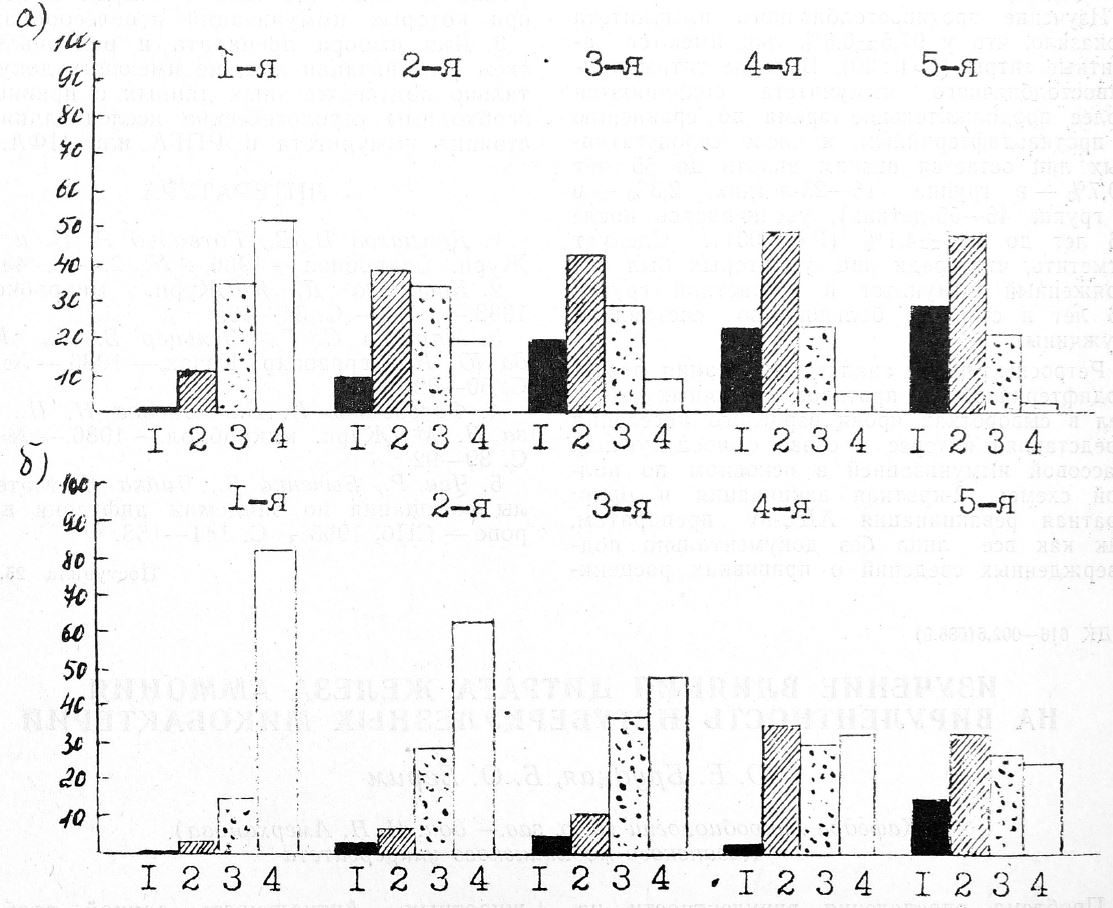 Распределение напряженности противодифтерийного (а) и противостолбнячного (б) иммунитета (в %) у различных групп взрослого населения.