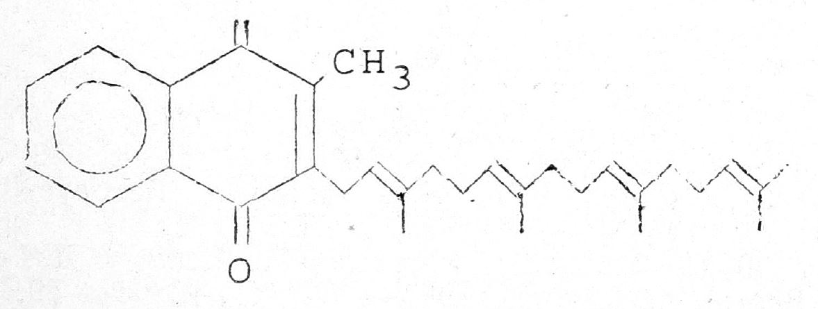 Витамины группы К, витамины коагуляции, или антигеморрагические витамины, являются производными 2-метил-1,4-нафтохинона. Они необходимы для синтеза в печени протромбина, факторов VII, IX и X, антикоагуляционных протеинов С и S, остеокальцина в костной ткани и гамма-карбоксилированных белков сперматозоидов и почек.