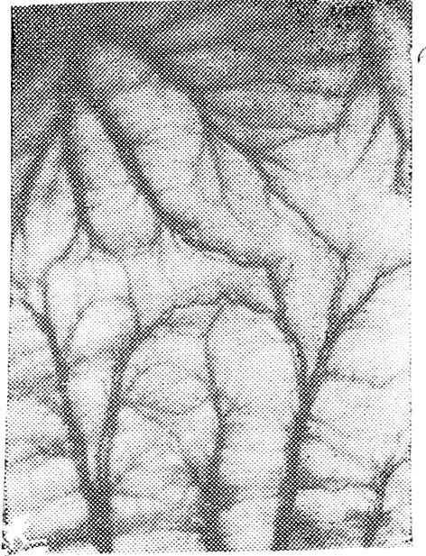 Мы разработали методику прижизненной пигментной вазографии полых органов в эксперименте на собаках (3. М. Сигал, 1968). Эта методика создала предпосылки для непосредственного наблюдения за заполнением ветвей интрамурального сосудистого русла. Обозрению доступны не только сосуды крупного калибра, но и мельчайшие ветви. Дифференцируется поступление красителя и распределение его по артериям и венам подслизистого сплетения (см. рис.).