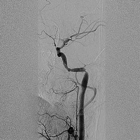 Известно, что характер и этиология инсульта в молодом возрасте отличаются от таковых у пациентов пожилого возраста, что оказывает влияние на диагностику и лечение. Лидирующую позицию в структуре причин ишемического инсульта у детей и молодых людей в возрасте до 45 лет занимает диссекция церебральных артерий. На сегодняшний день не существует чёткого руководства к действию, касающегося надлежащего лечения этой патологии. В этом наблюдении представлен успешный опыт лечения острого ишемического инсульта у молодого пациента (инсульт был обусловлен окклюзией в результате диссекции внутренней сонной артерии) с применением рентгенохирургического метода лечения - стентирования шейного отдела артерии с переходом на каменистый сегмент левой внутренней сонной артерии с использованием комбинированной проксимальной и дистальной протекции церебральных сосудов. Контроль состояния пациента и данные ангиографии и ультразвукового исследования свидетельствуют о благоприятном непосредственном и средне-отдалённом прогнозе для данного пациента.