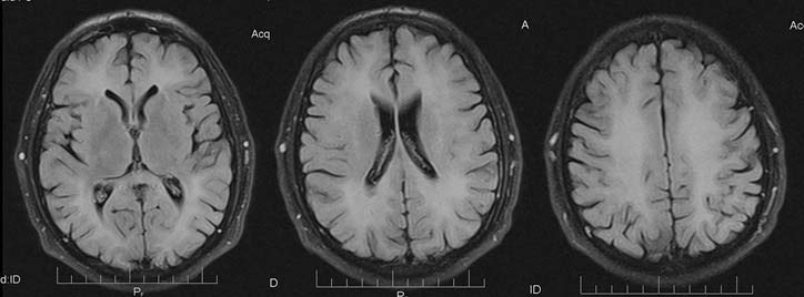 Рис. 3. Магнитно-резонансная томограмма пациента через полгода после эпизода отравления угарным газом