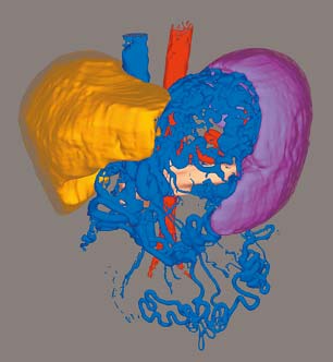 Рис. 2. 3D-реконструкция портальной каверномы по данным компьютерной томографии