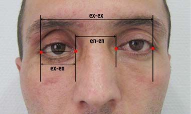 Индекс глазной щели | (ps-pi,l)×100/(ex-en,l) | Глазная щель узкая относительно её ширины | Глазная щель широкая относительно её ширины |