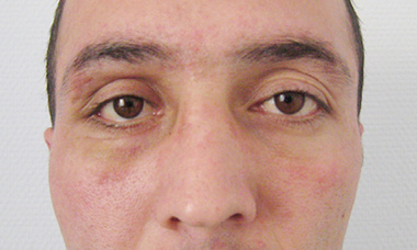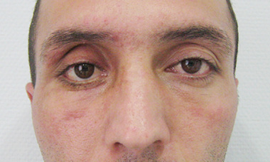 Рис. 3. Пациент А. 36 лет с вторичным посттравматическим энофтальмом, вид спереди до микролипографтинга