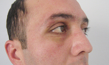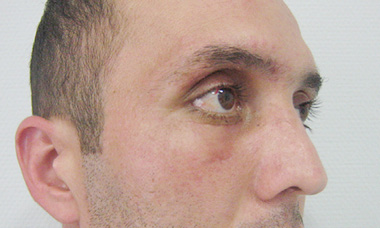 Рис. 6. Пациент А. 36 лет с вторичным посттравматическим энофтальмом, вид сбоку после микролипографтинга