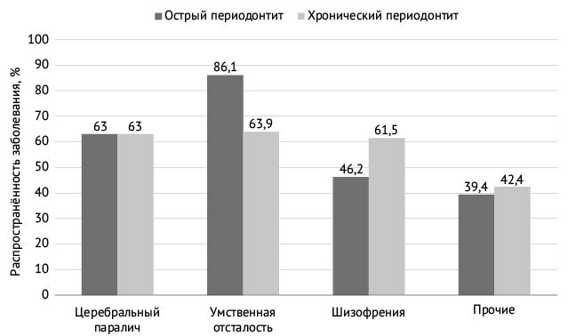 Рис. 3. Распространённость острых и хронических форм периодонтита у пациентов с психоневрологическими расстройствами