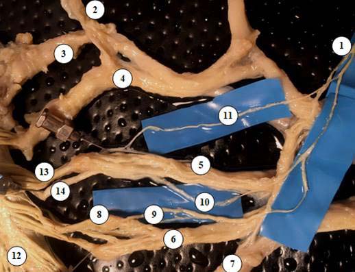 - Внутриствольное препарирование грудоспинного нерва позволило выявить микротопографию чувствительной и двигательной порций нервных волокон в нерве и на всём протяжении плечевого сплетения.