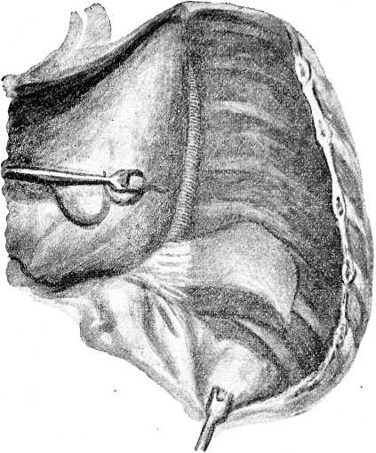Списокъ подобныхъ находокъ В. Voisin 22) заканчиваетъ случаемъ Quensel’a, гдѣ описываемый аномальный участокъ легочной ткани находился въ полости лѣвой плевры у дѣвочки 5-ти лѣтъ, между легкимъ и діафрагмой.