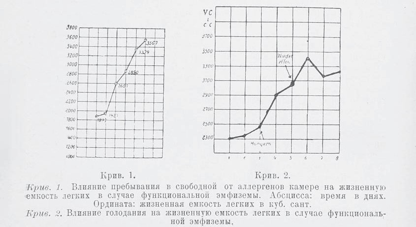 Крив. 2. Влияние голодания на жизненную емкость легких в случае функциональной эмфиземы.