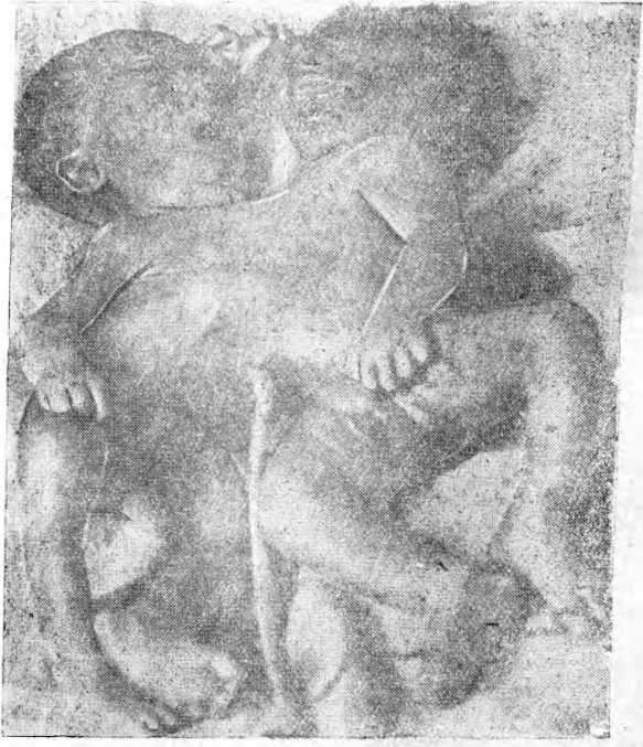 При поступлении в род. дом сердцебиение ясно прослушивалось с двух сторон. Головка родилась в заднем виде через полтора часа после отхождения вод. Ввиду невозможности извлечения туловища после рождения головки, акушерка вызвала врача. Было произведено извлечение плечевого пояса и ручек за вульварное кольцо. Появление в половой щели третьей ручки заставило произвести обследование ситуации рукой, введенной во влагалище, и диагносцировать сросшуюся двойню. Постепенными тракциями удалось добиться рождения второго туловища, ягодиц и ножек второго плода, вслед за которыми- без затруднений извлечена головка второго плода. При осмотре установлено, что оба плода (две девочки) срослись грудью и верхней частью живота, имеют одну пуповину, которая выходит из нижнего цояса сращения. Длина каждого плода 42 см, окружность головки —30,5 см, длина сращения — 12 см. Вес обоих плодов 3983 г. У левого плода имеется заячья губа и волчья пасть. При вскрытии в грудной полости найдены два легких: левое легкое — двухдольчатое — у левого плода, правое легкое — двухдольчатое — у правого плода. Сердце общее. В брюшной полости - две селезенки, одна печень; остальные органы отдельные. Остеохондрита нет. Таким образом, близнецы принадлежат к торако - абдоменопагам. Плоды, невидимому, были жизнеспособны и погибли лишь в связи с затянувшимся извлечением их.