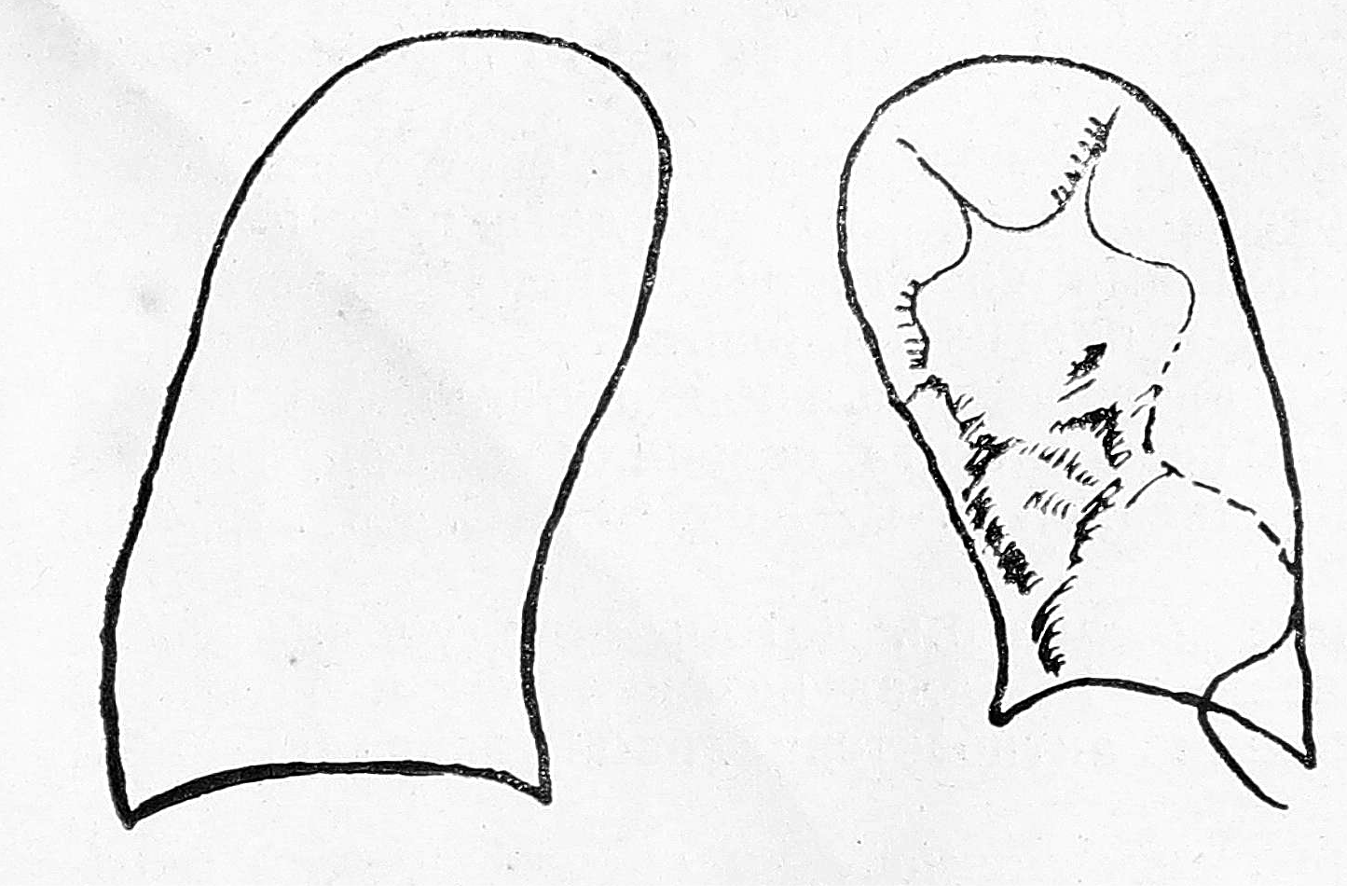 В обоих наших наблюдениях больные были моложе 30 лет, в отличие от имеющихся в литературе указаний на более старший возраст, характерный для мезотелиомы плевры. Вторая особенность наших наблюдений — в том, что опухоль развивалась без скопления в плевральной полости заметного количества выпота. При исследовании крови в начальном периоде болезни у обоих больных РОЭ не была ускорена. Развившееся позднее умеренно выраженное исхудание сопровождалось легкой бледно-землистого оттенка окраской кожных покровов.