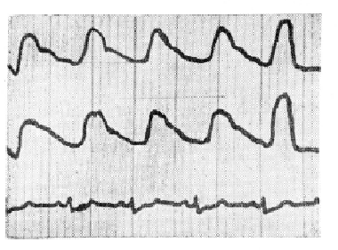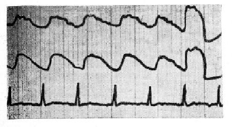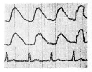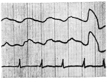 5.3 больных с особенно «плоской» вертебральной РЭГ в ответ на прием нитроглицерина (0,005 г) дали парадоксальную реакцию с потерей сознания. В дальнейшем при такой форме РЭГ-кривой мы были очень осторожны с применением нитроглицерина.