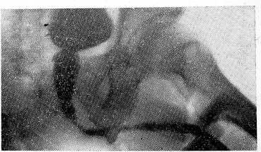 В январе 1979 г. М. вызван для контрольного обследования. Мочеиспускание свободное, широкой струей; надобности, в бужировании нет. Анализы мочи выявляют умеренное количество (до 100 в поле зрения) лейкоцитов. На нисходящей уретротрамме (рис. 2) в области членомошоночного угла—небольшой дивертикул. Это место распространения [1]. Между тем опыт нашей клиники показывает, что эти методы имеют много положительных сторон, основными из которых являются большой запас -эластичного пластического материала и возможность сохранения остатков собственной ткани уретры. Вероятность возникновения большого числа осложнений (волосяные камни, свищи, дивертикулы) и их опасность преувеличены. Применяя комбинацию обоих, методов, можно успешно проводить коррекцию стриктур уретры любой протяженности с хорошими отдаленными результатами.
