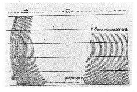 - Максимальная амплитуда—Аm—определяется в самом начале записи особой измерительной линейкой, прилагаемой к прибору, и выражается в омах или тысячных долях ома, т. е. килоомах.