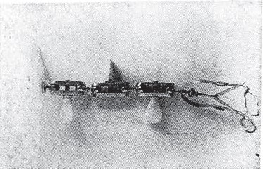 Мы предлагаем устройство, предназначенное для расширения крыльев носа и фиксации их в любом удобном для осмотра и внутриносовых манипуляций положении. Устройство состоит из собственно носорасширителя, ширина разведения бранш которого регулируется и фиксируется специальным винтом, из оголовья, предназначенного для фиксации всего устройства на голове больного, и шарнирного механизма, соединяющего первые два элемента. Фиксация носорасширителя может быть произведена в любом положении с необходимой жесткостью, регулируемой тремя винтами с барашками. Шарнирный механизм
