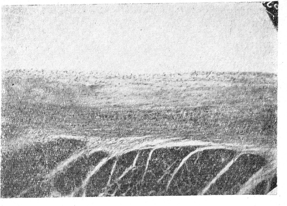 Из протокола вскрытия (прозектор Е. В. Руссен, научный консультант — проф. А. В. Рывкинд). Единичные атеросклеротические бляшки в аорте, коронарных и моз­говых артериях. Сердце большое, 550,0, полости его растянуты. Толщина миокарда у основания левого желудочка — 2 см, правого—1 см. Митральный и аортальный кла­паны, умеренно утолщены, створки их хорошо дифференцируются, не спаяны между собой, отверстия клапанов пропускают два пальца. Задняя папиллярная мышца при­крепляется к левому желудочку почти у самой верхушки, хорды передней створки укорочены, но тонки. Под полулуниями аорты (рис. 1) участок резкоотграниченного утолщения шириной 4 см, высотой 0,1—0,2 см, за­хватывающий межжелудочковую перегородку, стенки желудочка, латерально переходящий на створку митрального клапана и таким образом как бы циркулярно замыкающийся. Данное образова­ние является как бы дупликатурой эндокарда, по нижнему краю образующей карманы (можно пред­положить, что последние расширялись током крови, тем самым увеличивая степень сужения подаор­тального пространства). Трехстворчатый клапан тонкий, но хорды его перекручены, сосочковая мышца в средней части имеет перетяжку, в верх­ней — колбовидно расширена, хорды задней створки укорочены, не утолщены, прикрепляются непосредственно к эндокарду. Легочная ткань пол­нокровна, пронизана разрастаниями фиброзных тяжей. Печень увеличена, с мускатным рисун­ком. Полнокровие других внутренних органов.