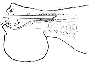Рис. 5. Расположение эндоскопа (в трахее) и источника света (в пищеводе) при трансиллюмина-