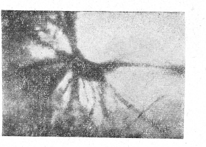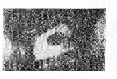 На рис. 3 и 4 представлены трансиллюминационные изображения конкрементов в общем желчном протоке, которые не были выявлены пальпаторно и холангиографией, В одном из этих наблюдений один конкремент (рис. 4) фиксировался в виде дефекта наполнения на холангиограмме, второй, не определявшийся на холангиограмме и пальпаторно, был найден лишь при просвечивании.