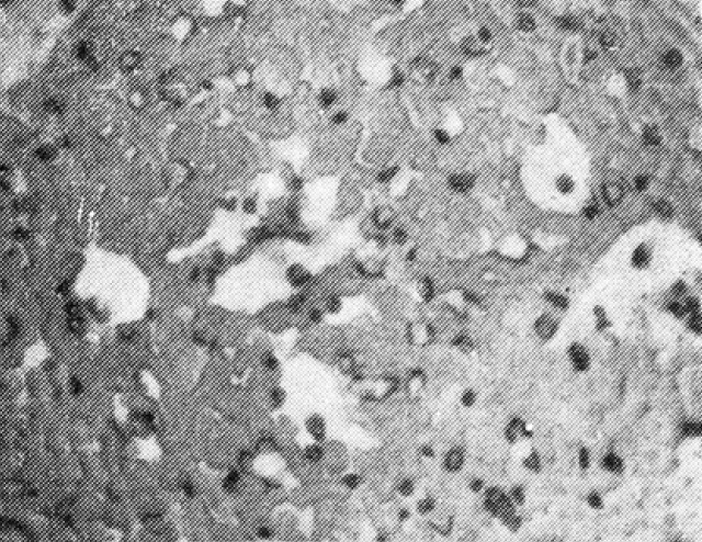 В моче следы белка, 2—4 эритроцита в поле зрения, повышенный уробилин. Уробилина — 3,8 мг, стеркобилина — 331 мг. Билирубин крови 1,12 мг%—реакция прямая, замедленная. Осмотическая резистентность эритроцитов: минимальная — 0,50, максимальная — 0,38. Протромбиновый индекс — 82. Холестерин — 145 мг%. Общий белок — 9,8 г%, альбумины—46,7%, глобулины — 53,3%. Реакция Таката- Ара положительная. Тимоловая проба — 9 ед. Золотоколлоидальная проба ++.