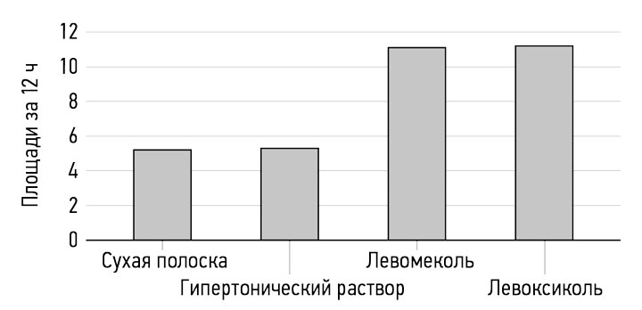 1. In vitro experiments showed that Levoxycol has a more pronounced osmotic activity (for 24 hours vs. 12 hours in the control group).