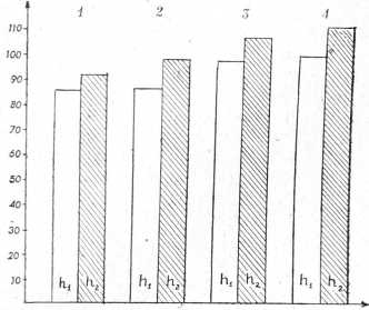График зависимости высоты волн h1 и h2 от характера заболевания