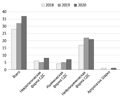 Рис. 1. Структура пациентов с синдромом диабетической стопы (СДС) Городской клинической больницы №6 г. Ижевска в 2018–2020 гг.