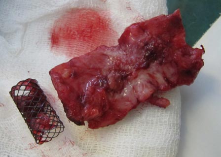 Учитывая нежелательность длительного нахождения металлических стентов в трахее, эндопротез необходимо установить не ранее чем за 3 нед до предполагаемого хирургического вмешательства. Удалённый при операции стент не повреждается, и при необходимости его можно использовать повторно.