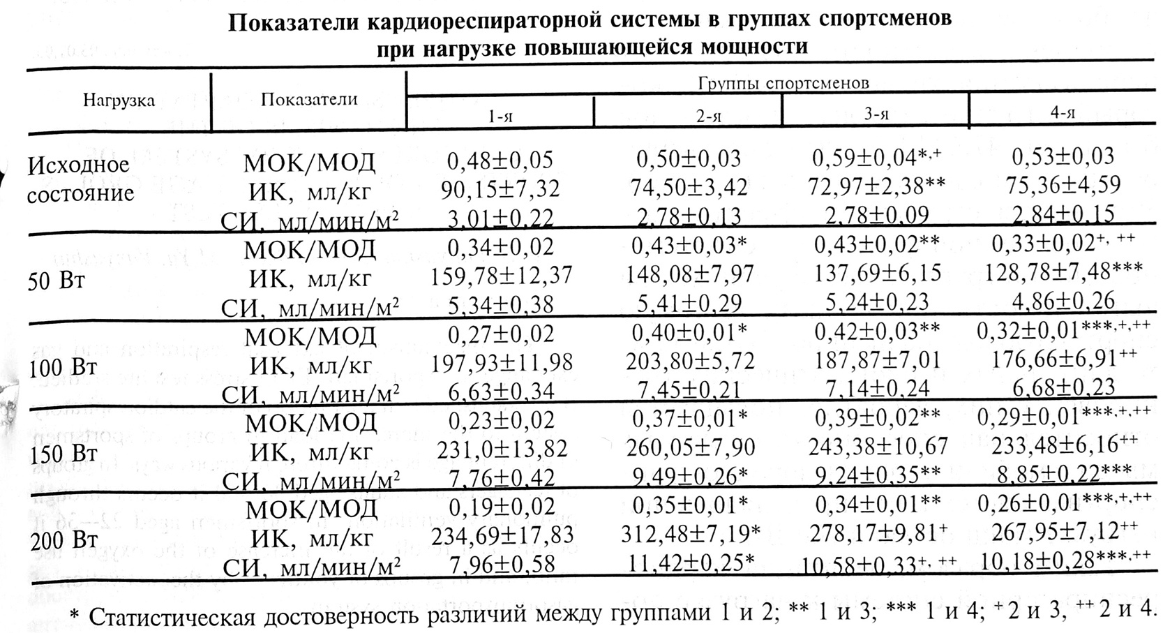 Таким образом, адаптация кардиореспираторной системы к нагрузке повышающейся мощности в группах спортсменов разного возраста, специализирующихся в видах спорта на выносливость, реализуется различным способом. В группах подростков и взрослых спортсменов в возрасте от 36 до 60 лет это происходит в результате более высоких показателей легочной вентиляции, в группе взрослых спортсменов 22—35 лет — за счет повышения КИО,, а в группе юношей — путем активации газотранспортной системы. Об этом свидетельствуют достоверно более высокие величины индекса кровообращения и сердечного индекса.