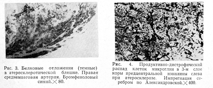 При изучении сосудов и ткани мозга 31 умершего (22 — от атеросклероза и 9 — от гипертонической болезни) с применением комплекса основных современных общегистологических, гистохимических и нейроморфологических методов исследования мы пришли к выводу, что нарушения гисто-гематических барьеров (ГГБ) стенок сосудов играют существенную роль в морфогенезе атеросклероза церебральных артерий, а на уровне микроциркуляторного русла мозга — ив обеспечении метаболических взаимоотношений сосудистого русла и ткани мозга.