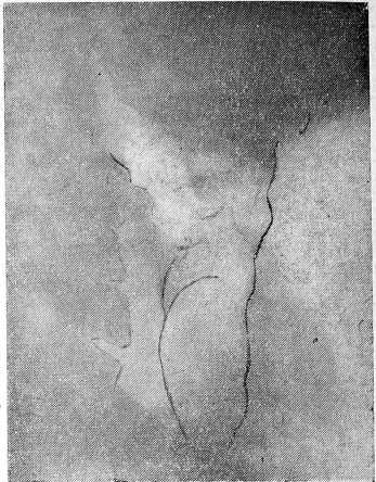 Помимо сужения трахеи отмечается неровность и зазубренность контуров. При прорастании опухоли в. просвет трахеи наряду с утолщением стенки трахеи в ее просвете определяется дополнительная тень опухоли (рис. 2 и 3).