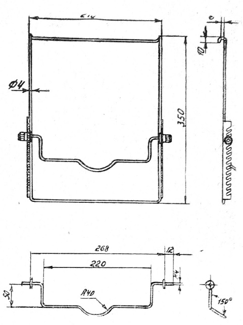 Рис. 2. Чертеж свинцовой пластины с прорезью. Вид спереди и сбоку, с указанием размеров.