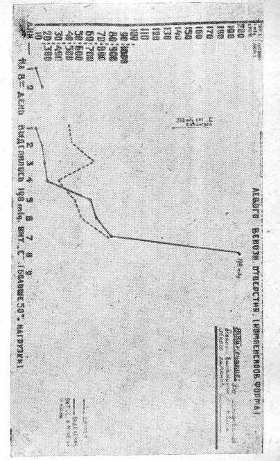 Особо мы должны остановиться на двух больных с легкой формой скорбута, которые в противоположность вышеописанным трем случаям, пришли в клинику уже на исходе заболевания. Несмотря на то, что налицо еще были явления геморагического диатеза, последние ликвидировались в течение ближайших дней. Как выяснилось, больные лечились уже некоторое время амбулаторно, и с момента установления диагноза получали питание, содержащее Витамин C: зеленый лук, черносмородиновый сок, настой из шиповника. У одного из этих больных кривая выделения по типу нижней границы „витаминного равновесия" (пограничный с гиповитаминозом). У другого больного кривая по типу гиповитаминоза.