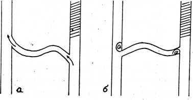 а — оптимальная S — образная, б — неправильная ориентация шунта (объяснения в тексте).