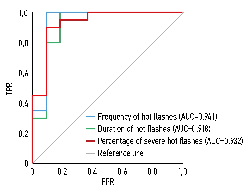 Table 3. Results of ROC analysis of atrial fibrillation in relation to hot flash frequency, duration, and severity