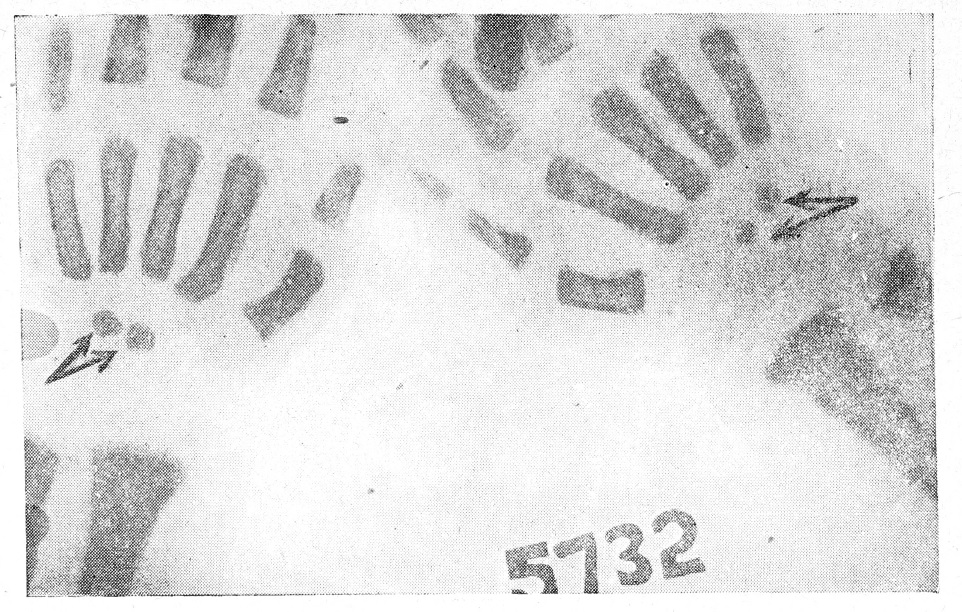 - Володя Ч., 31/2 мес. Лечение с 23/II до 2/ІV 35 г. Снимок до лечения (23/II 35 г.): Слабо выраженная рахитическая зона лучевых и локтевых костей обеих рук. Несколько раздвинуты дистальные метафизы этих костей. Небольших размеров нежное, несовсем четко контурируемое ядро os capitatum. Снимок после лечения (19/ІV 35 г.): Исчезновение рахитической зоны лучевых и локтевых костей обеих рук. Больших размеров, интенсивной костной структуры, четко контурированное ядро os capitatum.