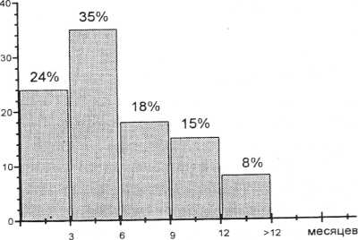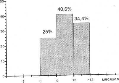Рис. 1. Длительность ремиссии атопического дерматита в группе детей, получавших рибоксин.